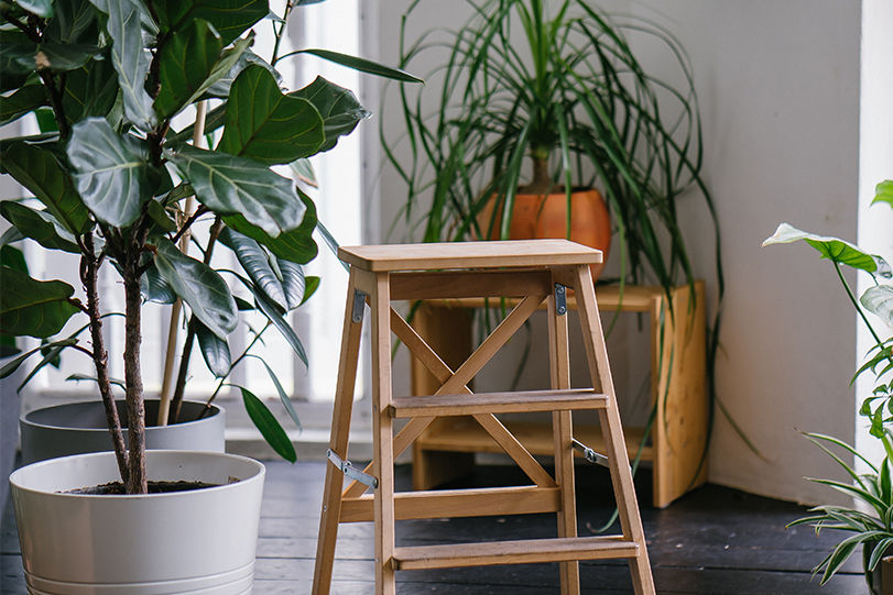 Einzelne Pflanzen, die an verschiedenen Plätzen in der Wohnung platziert wurden, wirken häufig recht verloren. Machen Sie also eine Sammlung daraus. So können Sie beispielsweise Pflanzenregale nutzen, um mehrere kleinere Pflanzen oder Ableger dekorativ darauf anzuordnen. Diese sind als Standregale erhältlich oder lassen sich an einer tragfähigen Wand aufhängen. Hängeregale bringen Leichtigkeit in die Einrichtung. Noch dazu lassen Sie sich so anbringen, dass die jeweiligen Pflanzen ihren perfekten Standort erhalten und optimal mit Licht versorgt werden. Größere Pflanzen können Sie auf Standhockern wunderbar in Szene setzen. Dafür platzieren Sie beispielsweise einen Hocker auf jeder Seite Ihres Sofas und stellen zwei größere Pflanzkübel darauf ab. Feigen oder Palmen eignen sich besonders gut dafür. Und selbst wenn Sie Ihren privaten Dschungel mit nur wenigen Pflanzen starten: Bei guter Pflege werden sich diese vermutlich mit der Zeit wie von selbst vermehren. Sie werden sehen – viele Pflanzenliebhaber beginnen mit nur einer Pflanze. Bald haben die Pflanzen jedoch schon die ganze Wohnung bevölkert.